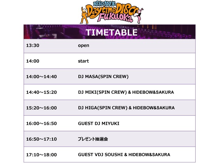 ■チケットのお申込み・お問合せ:チケットぴあ https://w.pia.jp/t/daytimedisco-fukuoka/