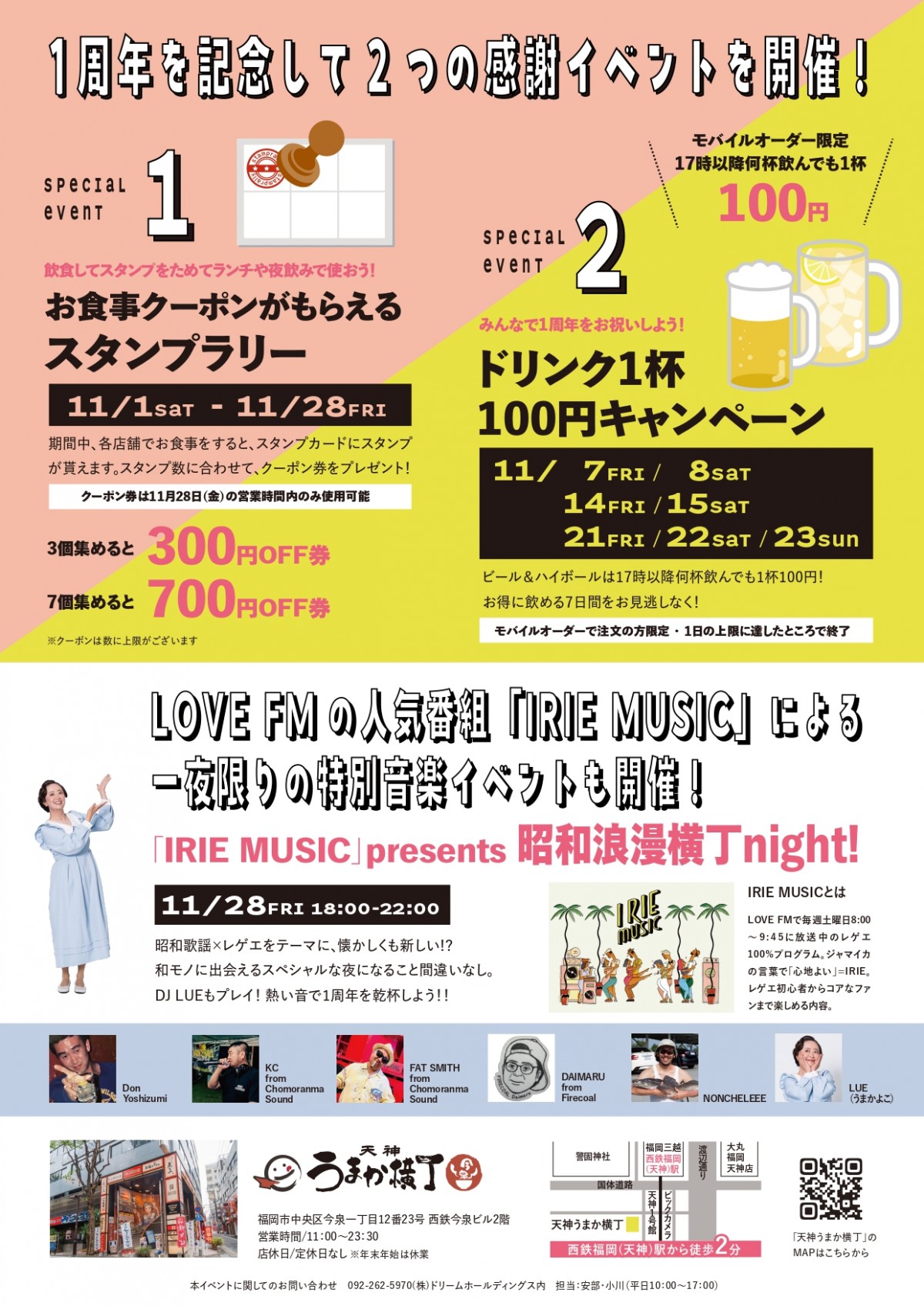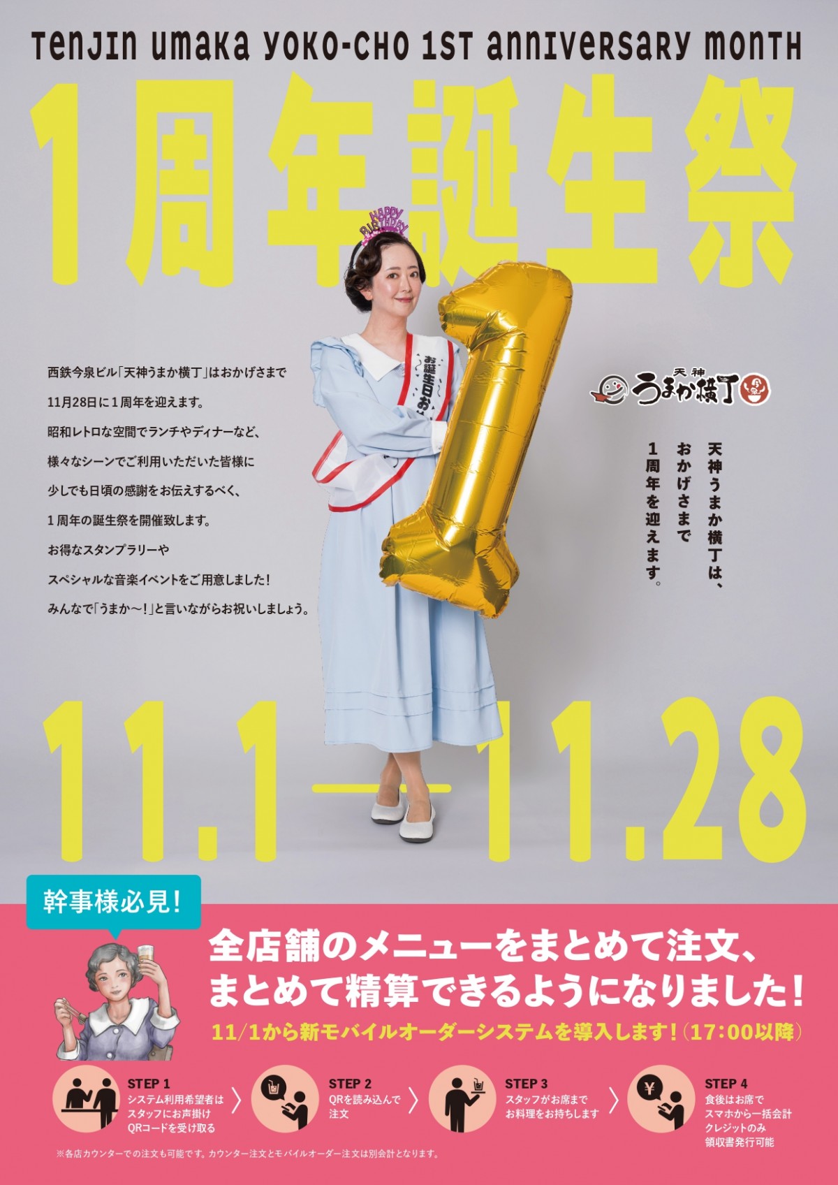 <西鉄今泉ビル「天神うまか横丁」の1周年を記念した、特別イベント・キャンペーン開催!!>