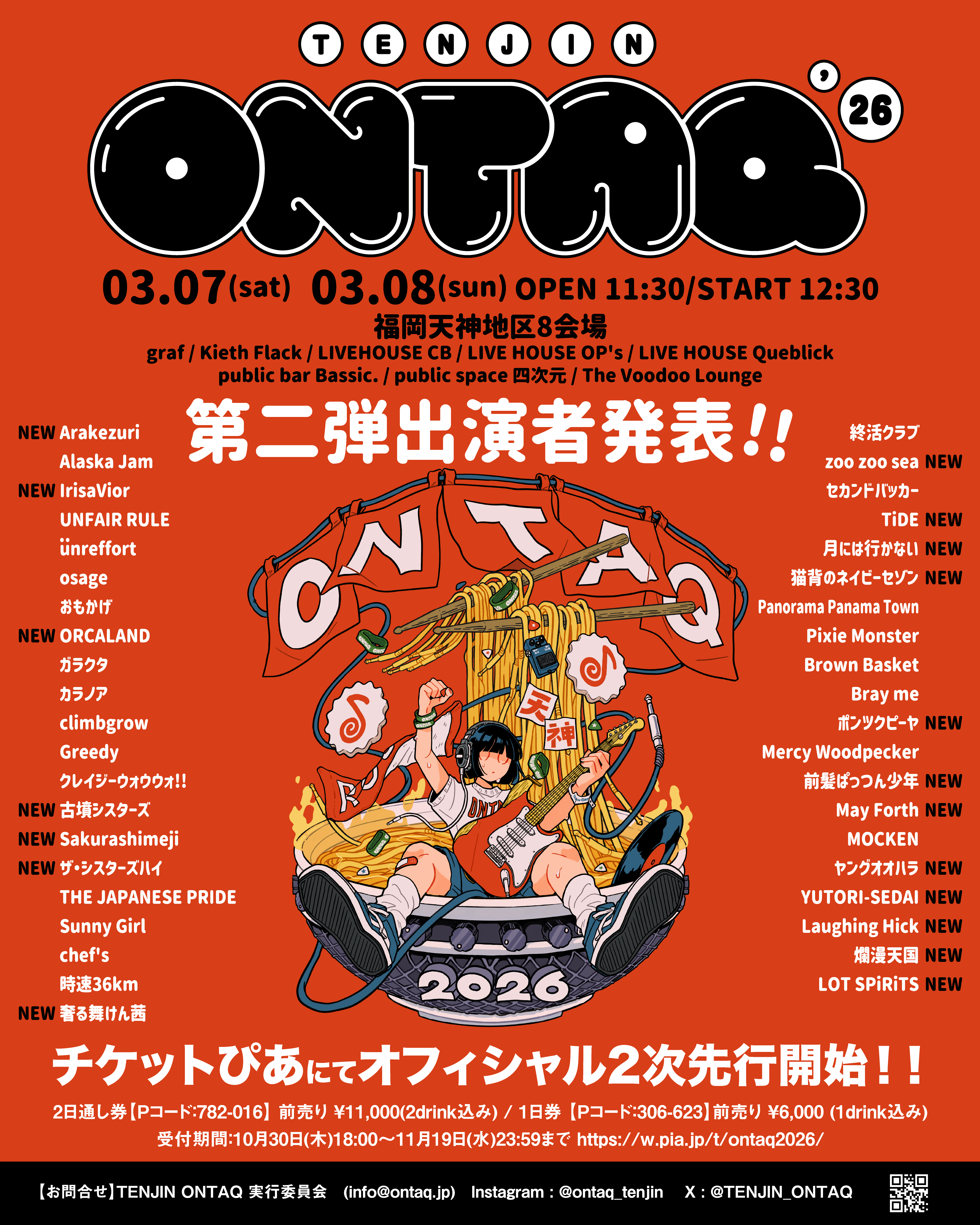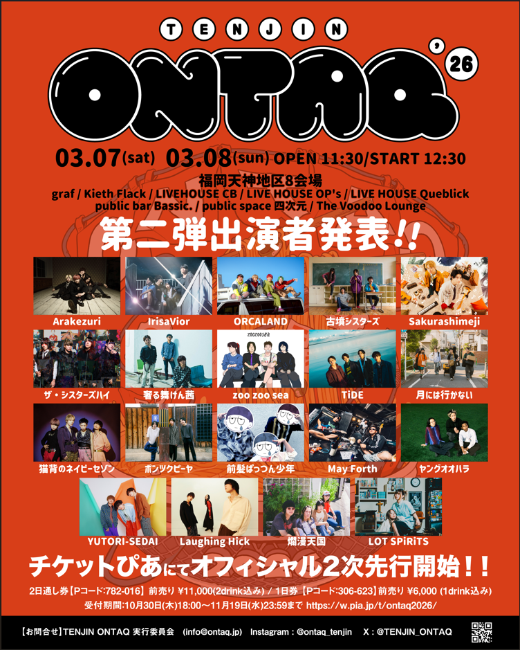 【LOVE FM Support Event】"TENJIN ONTAQ 2026" 出演者第2弾発表のおしらせ