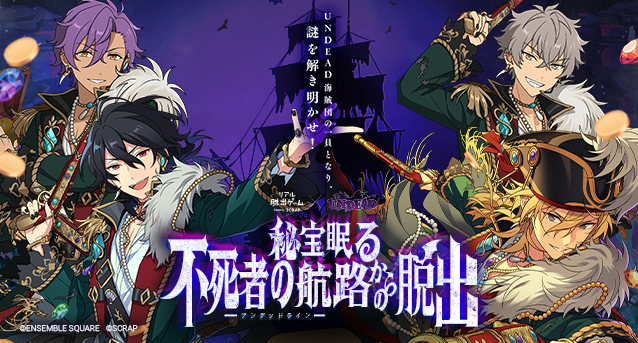 『秘宝眠る不死者の航路からの脱出』は、ESファン感謝祭で好評を博した『UNDEAD』制作のリアル脱出ゲームを、全国のファンの皆様にお届けするためにツアー化したものです。参加者の皆様は、お宝を追い求める『UNDEAD』海賊団の一員となり、メンバーたちと協力しながら謎を解き、伝説の秘宝を手に入れる冒険に出ます。