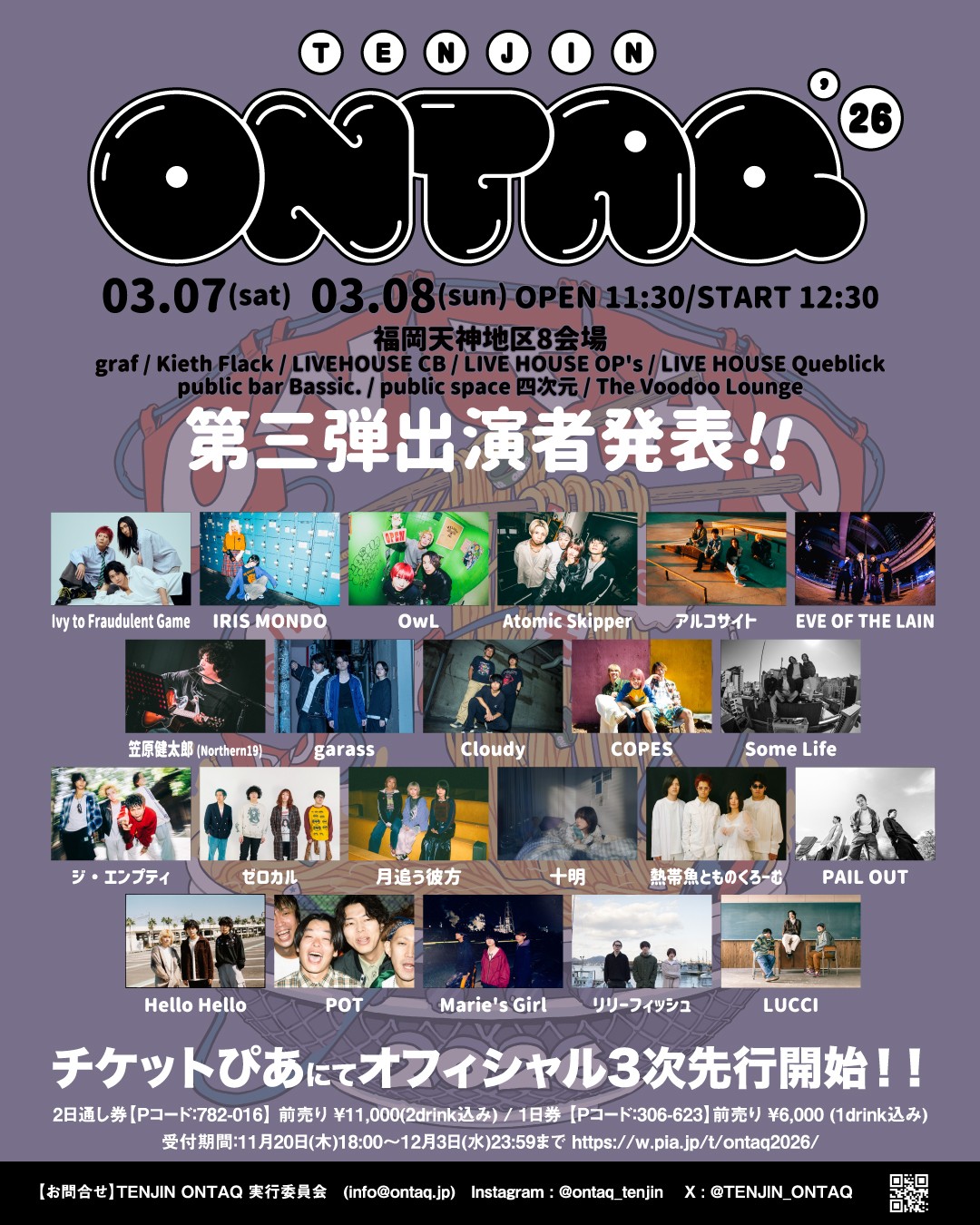 TENJIN ONTAQ 2026 第3弾出演者・日割り発表!