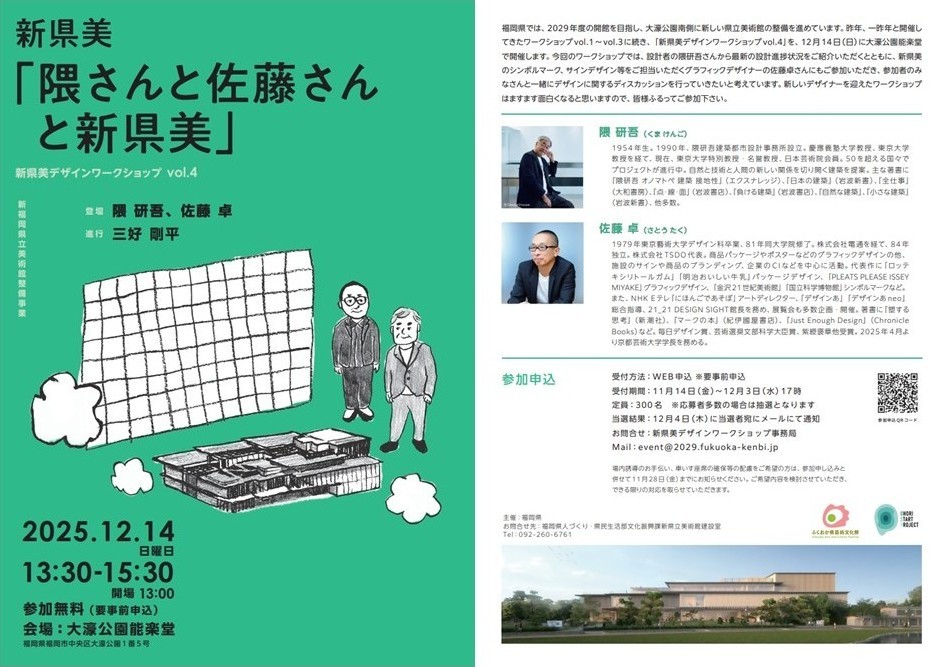これまで開催したワークショップに続き、「新県美デザインワークショップvol.4」が、12月14日(日)に大濠公園能楽堂で開催!