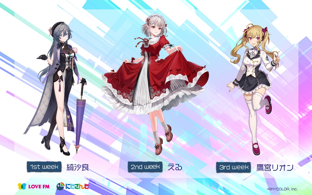 綺沙良、える、鷹宮リオン の3人にメッセージ募集中