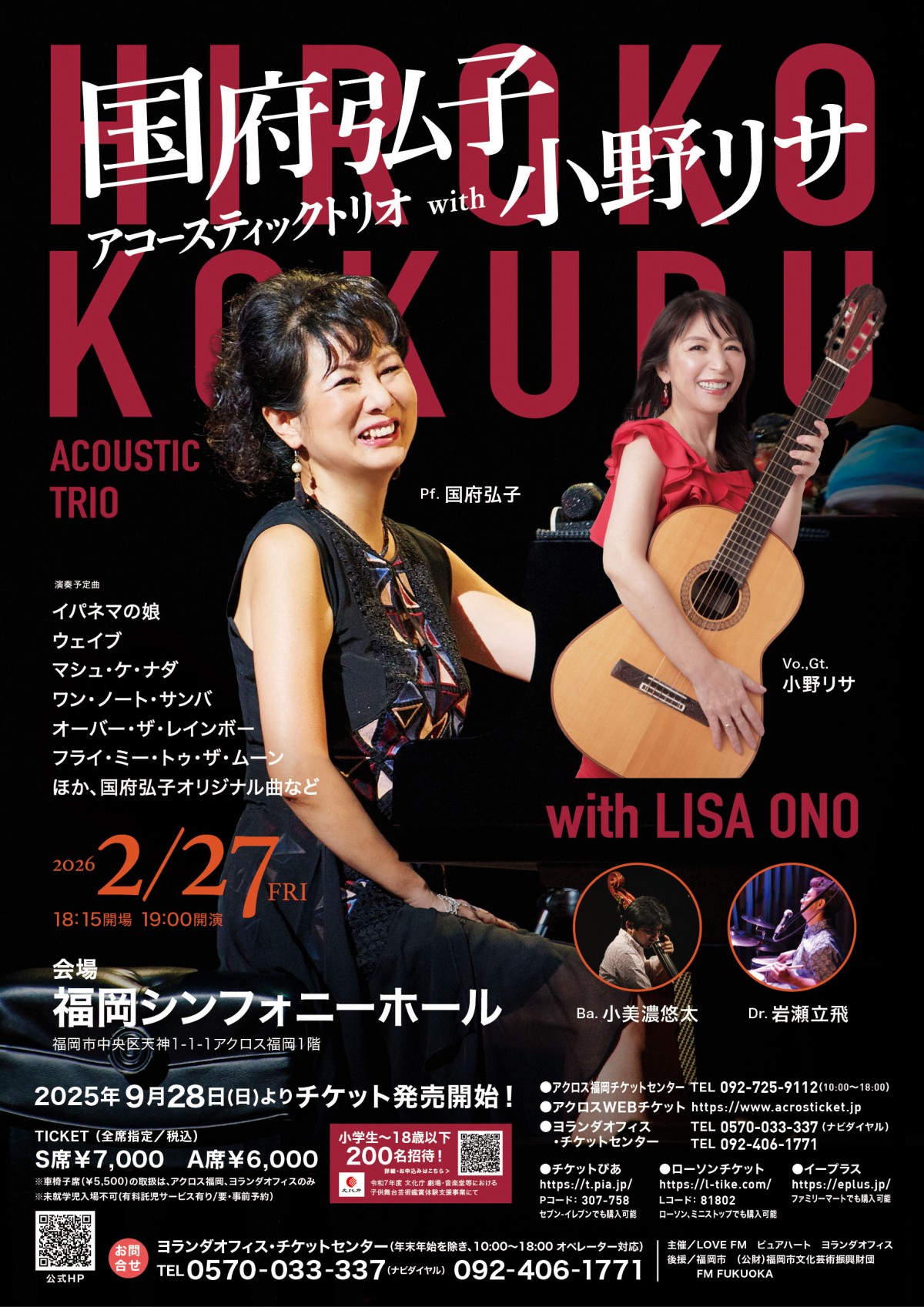 【Presented by LOVE FM】「国府弘子 アコースティック トリオ with 小野リサ」福岡公演決定!