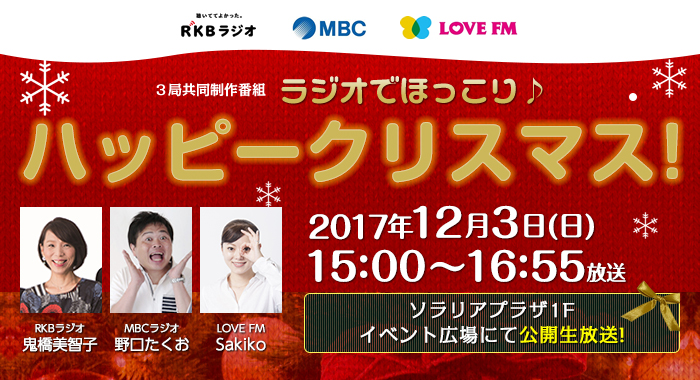 RKBラジオ・MBCラジオ・LOVE FM3局サイマル放送【ラジオでほっこり♪ハッピークリスマス!】(※終了)