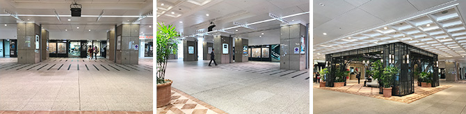 天神のあらゆる方面への回遊拠点。天候に左右されないオープンスペースです。