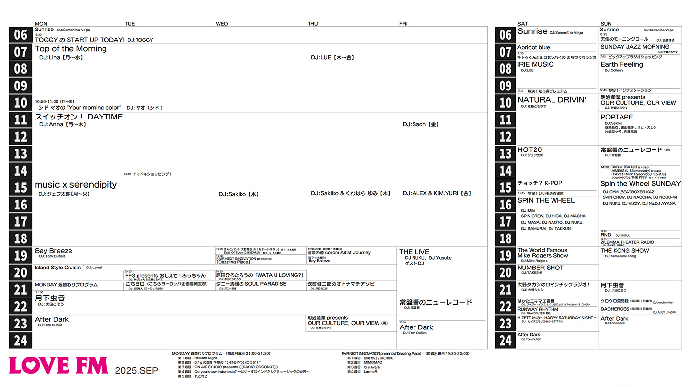 仕事や勉強、家事など、それぞれの場所で頑張るあなたへお届けするプログラム。お昼のひとときを、もっと充実させるための情報と音楽をあなたに。国内外の最新ニュースから、知的好奇心をくすぐるトレンドまで、日々の生活が少し豊かになるようなトピックが満載。そして、あなたの頑張りを後押しする「音楽」を厳選してお届け。好奇心旺盛なAnnaとSachが、趣味から仕事、最新トレンドまで、ジャンルを飛び越えて素敵な情報をお送りします!